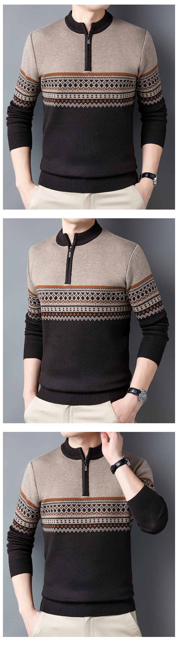 스트라이프 집업 남성 울 스웨터